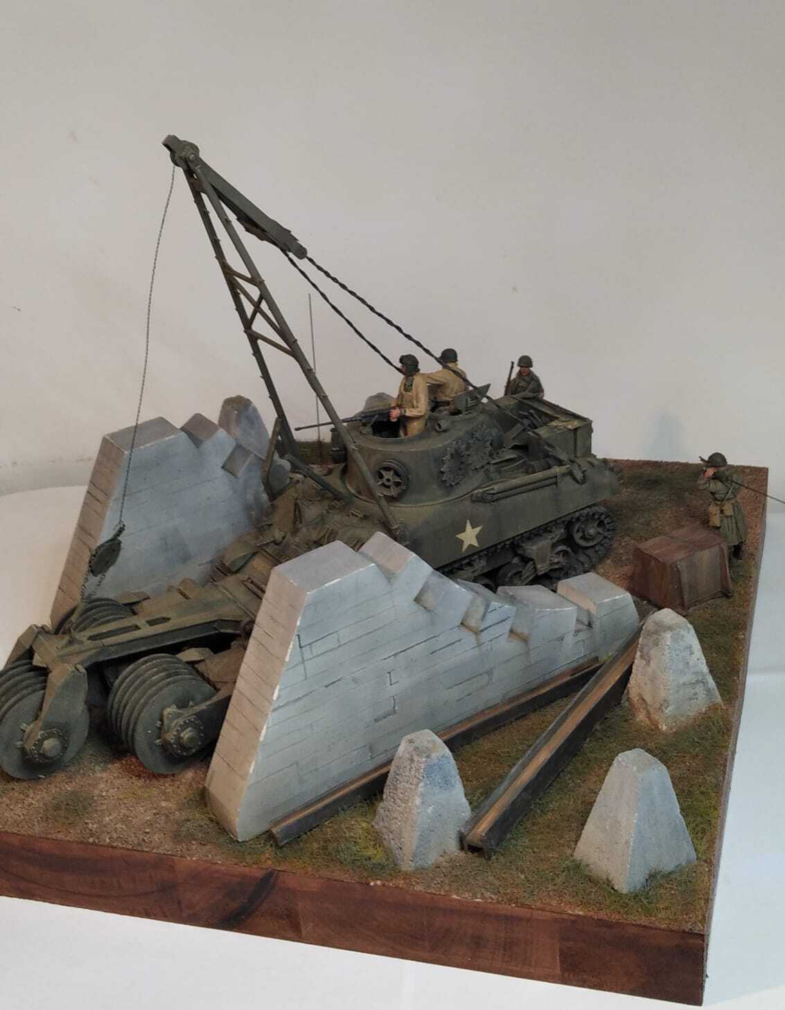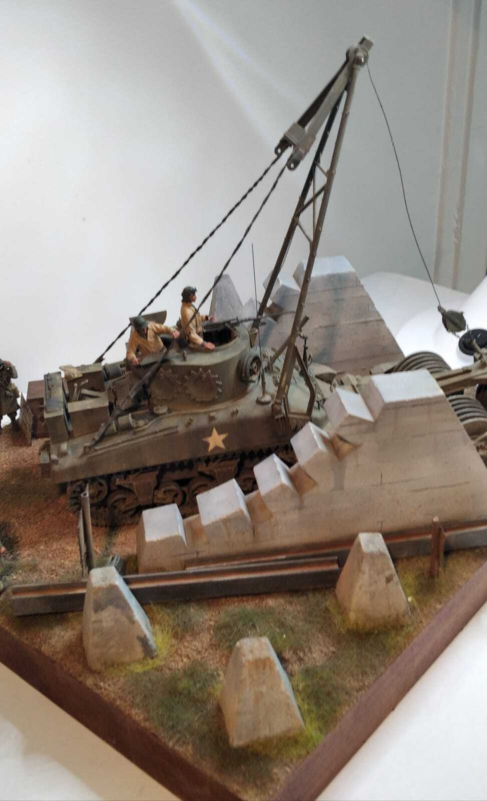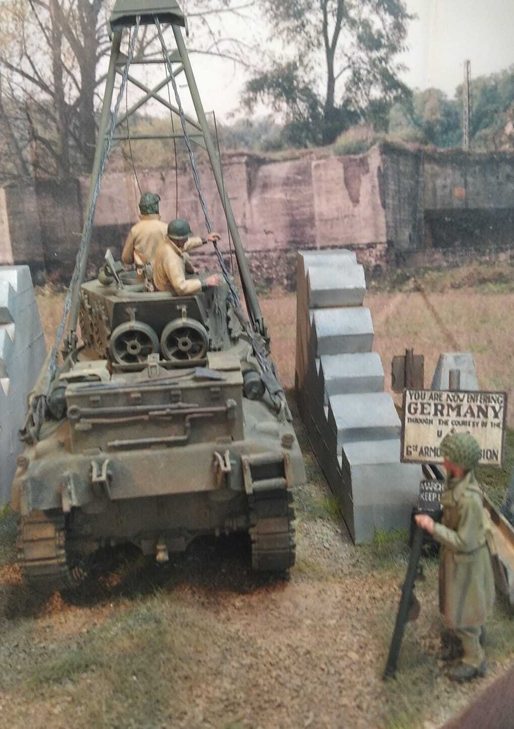 While it is possible that some of the 91 new production PSC M4A1s converted to M32B1s could have had large hatches, we have yet to see any evidence supporting this. In 2008, a set of “GI photographs” surfaced showing a large hatch M32B1 in Germany shortly before or after VE Day. Tactical markings show that the vehicle was with Service Company of the 20th Tank Battalion, 20th Armored Division. A portion of the Registration Number (1) beginning with 40155 can be seen in one of the photos, which is outside the range allocated to the vehicles converted from the 91 new M4A1s (40149307 to 40149397) confirming that this retriever was instead one of the 384 M32B1s converted by PSC from used M4A1s. This retriever can be seen with the spare drive sprockets mounted on the hull side as per the standard stowage configuration (2), the door type turret port (3), frame type tool fitting on the fenders (4) and the adaptor platforms for the mortar feet (5), all later style fittings introduced after the retrievers built on the 91 new PSC M4A1s had been completed. Note that the hull does have thickened sides indicating it was manufactured with the cast in hull armor (6). Large hatch M4A1(75)s were pretty rare. Our research suggests that about 100 of the 175 M4A1(75)s produced by PSC in December, 1943 had them. http://the.shadock.free.fr/sherman_minu ... 2_trv.html